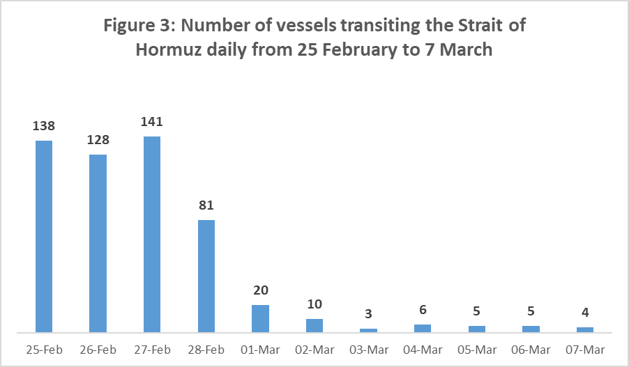 [15] “HORMUZ TRACKER: Iranian VLCCs, China-linked Ships Transit Gulf” news report, Bloomberg news website, 11 March 2026.